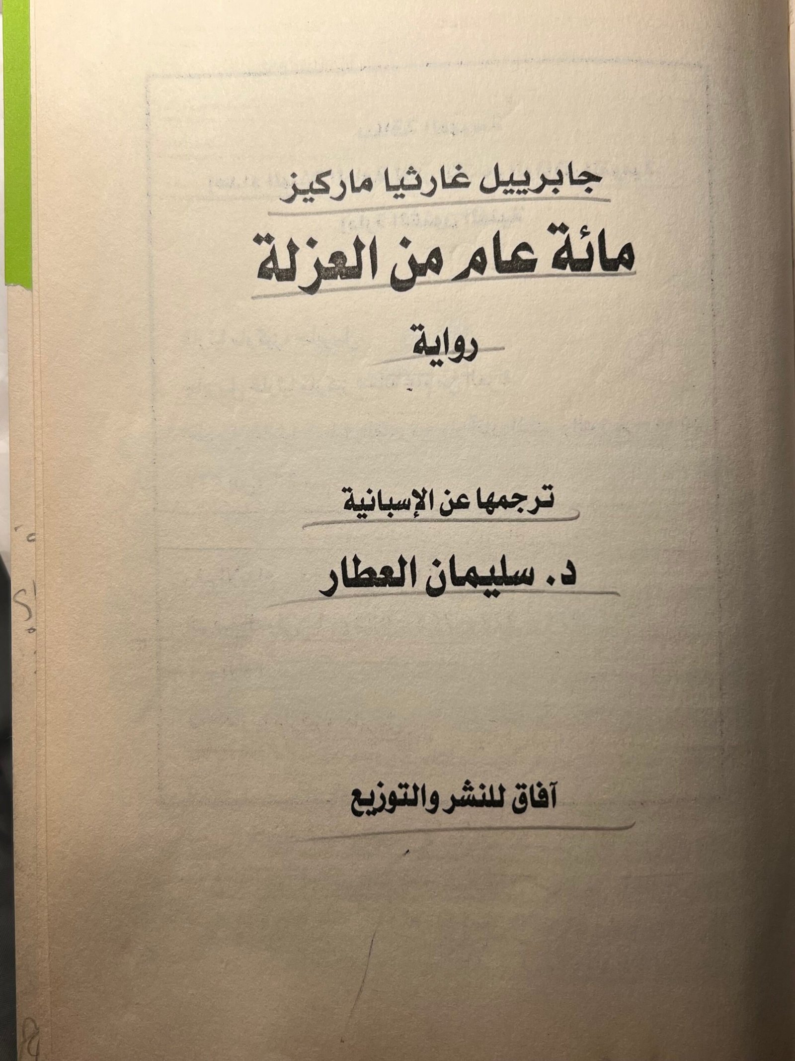 تقييم ومراجعة رواية مئة عام من العزلة للمؤلف الإسباني غابرييل غارثيا ماركيز — عن ترجمة د. سليمان العطار، وعن نشر وتوزيع دار آفاق