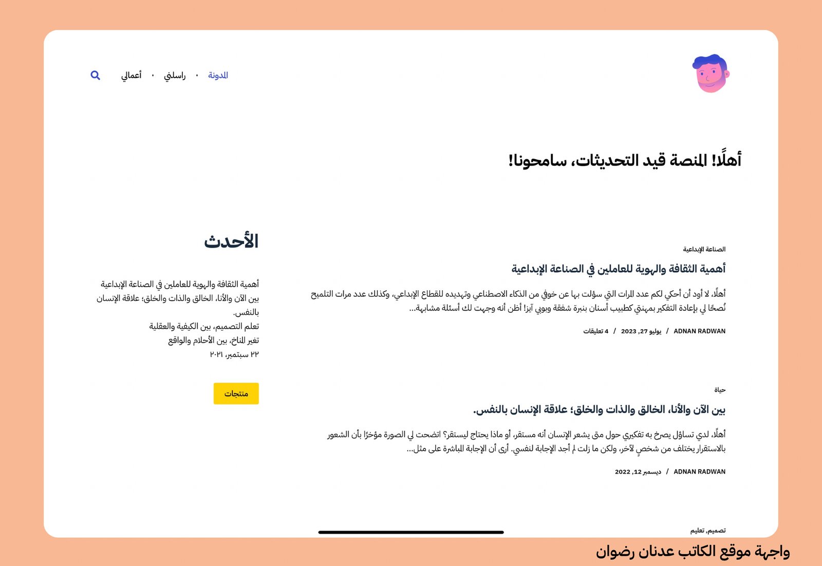 - موقع عدنان رضوان مصمم إبداعي وكاتب — رابط الموقع 🔗